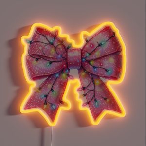 Sparkling Pink Bow With Twinkling Christmas Lights RGB Neon Sign
