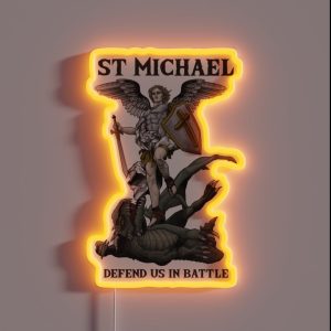 Saint Michael The Archangel Defend Us In Battle RGB Neon Sign