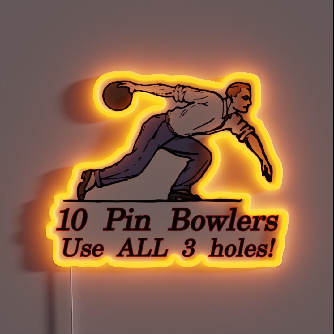 Get your strike on with our 10-Pin Bowlers Neon Sign! A vibrant, handcrafted glow in the dark LED sign featuring colorful RGB neon lights, perfect for bowling alleys, homes, or game rooms.