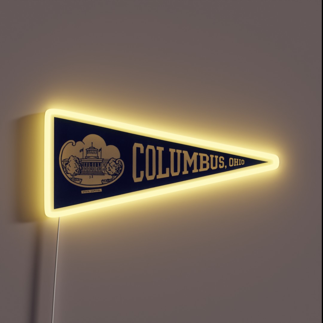 Vintage-inspired 1940s Columbus, Ohio RGB neon sign, expertly crafted to bring nostalgic charm and modern flair to any room.