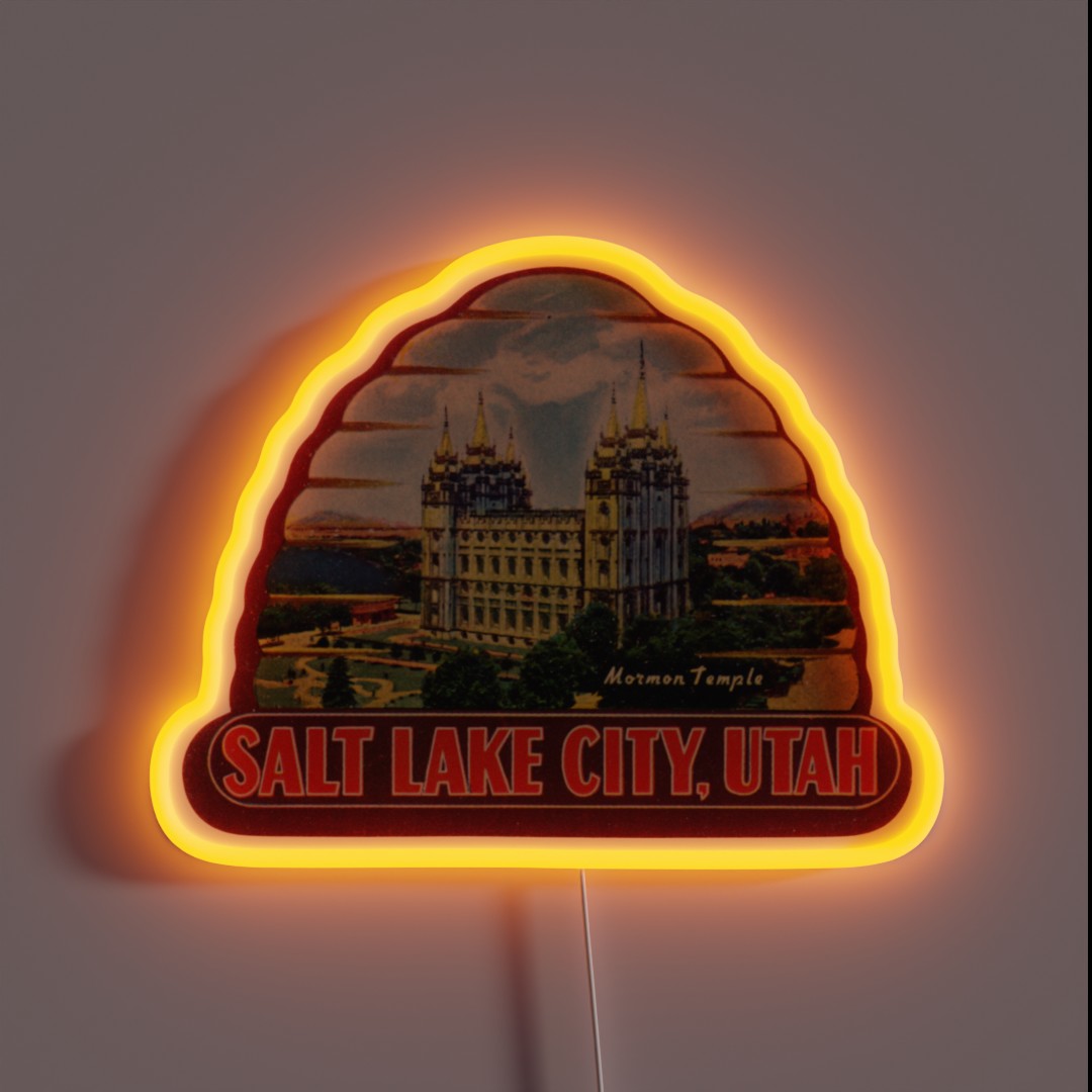 Vintage-inspired 1940s Salt Lake City Utah RGB neon sign, meticulously crafted to capture the essence of Old West charm and modern LED technology.