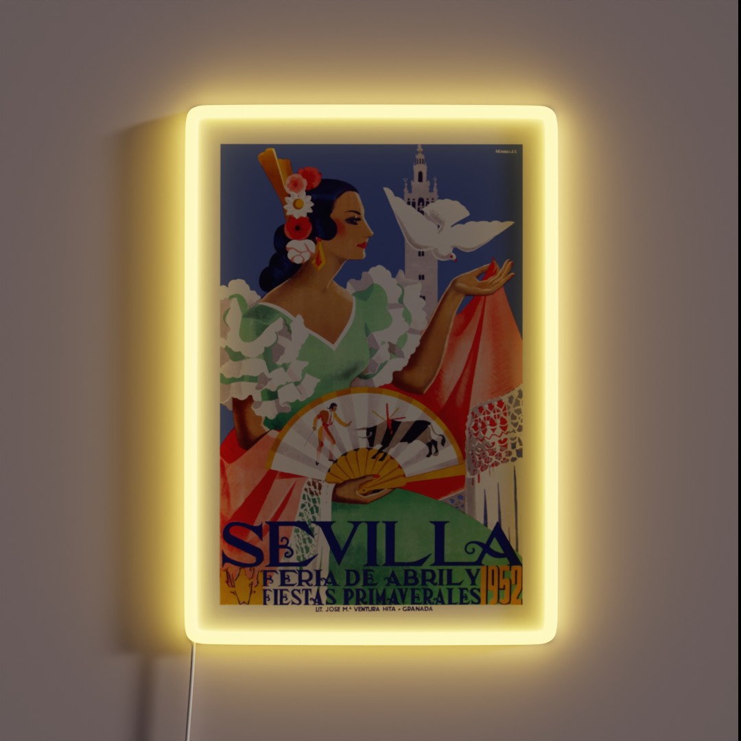 1952 Seville Spain April Fair Poster RGB Neon Sign