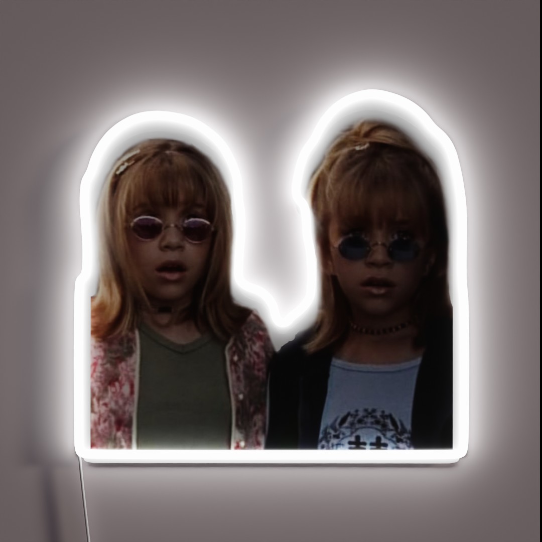 Bring a touch of 90s nostalgia into your home or office with this vibrant 2000 s RGB neon sign featuring Mary-Kate and Ashley Olsen. The dual-sister duo’s iconic image is recreated in bold, colorful neon lights that are not only visually striking but also surprisingly safe and durable.