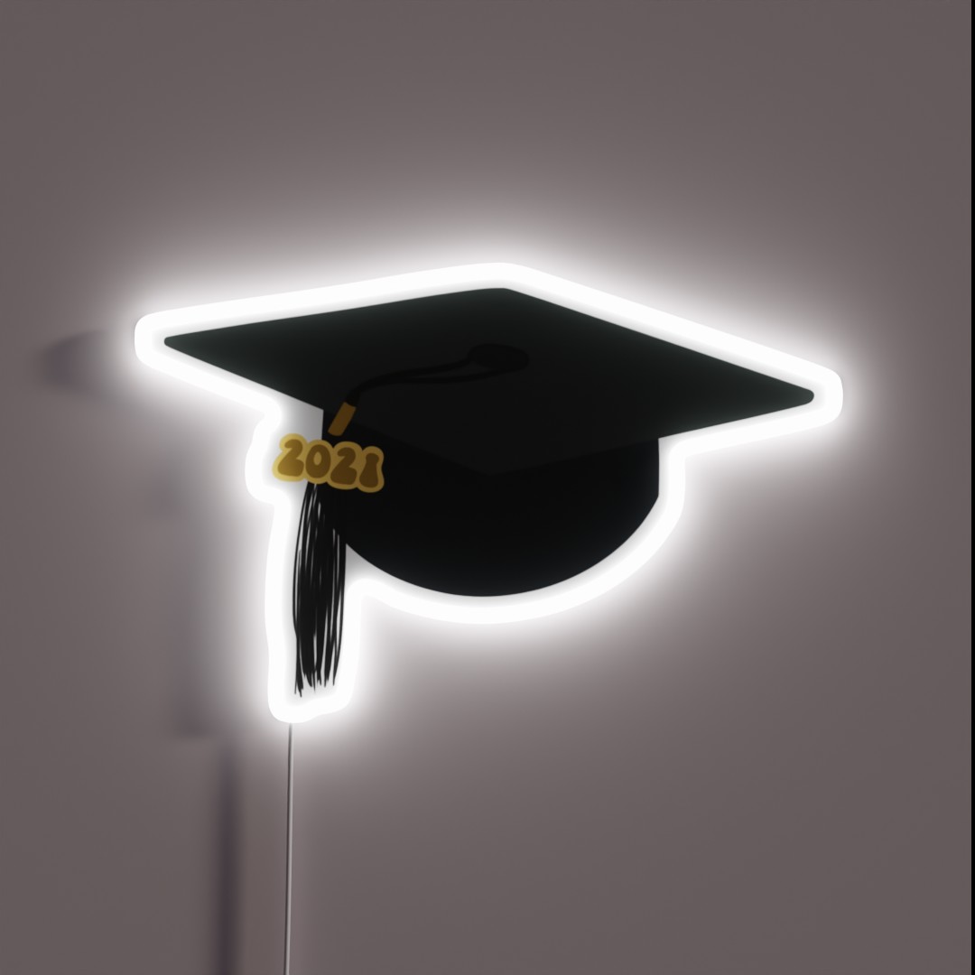 Add a pop of color and nostalgia to your room with our 2021 Black Graduation Cap RGB neon sign, perfect for alumni to showcase their accomplishment.