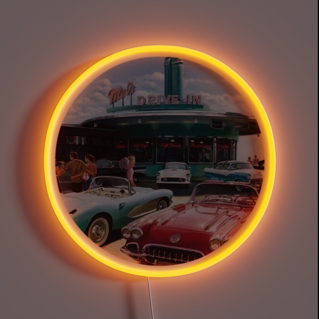 Bring the nostalgic charm of retro diners to your home with our 50’s Drive-In Diner RGB Neon Sign. A vibrant and eye-catching addition that recreates the essence of classic American diners.