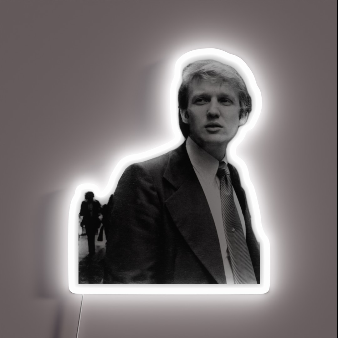 Perfect for fans of retro culture, music enthusiasts, or anyone looking to add a pop of color to their space, this neon sign is an eye-catching conversation starter. Its compact size makes it suitable for mounting in a variety of settings, from small apartments to larger commercial spaces. With its low power consumption and energy-efficient design, the 70s Trump Out and About RGB Neon Sign is not only visually stunning but also environmentally friendly.