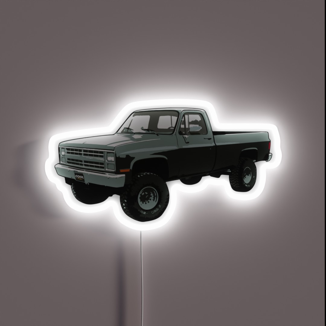 Add a touch of retro cool to your garage or man cave with this vintage-inspired ’80s Chevy Truck 4×4 RGB neon sign, featuring colorful LED lighting and nostalgic charm.