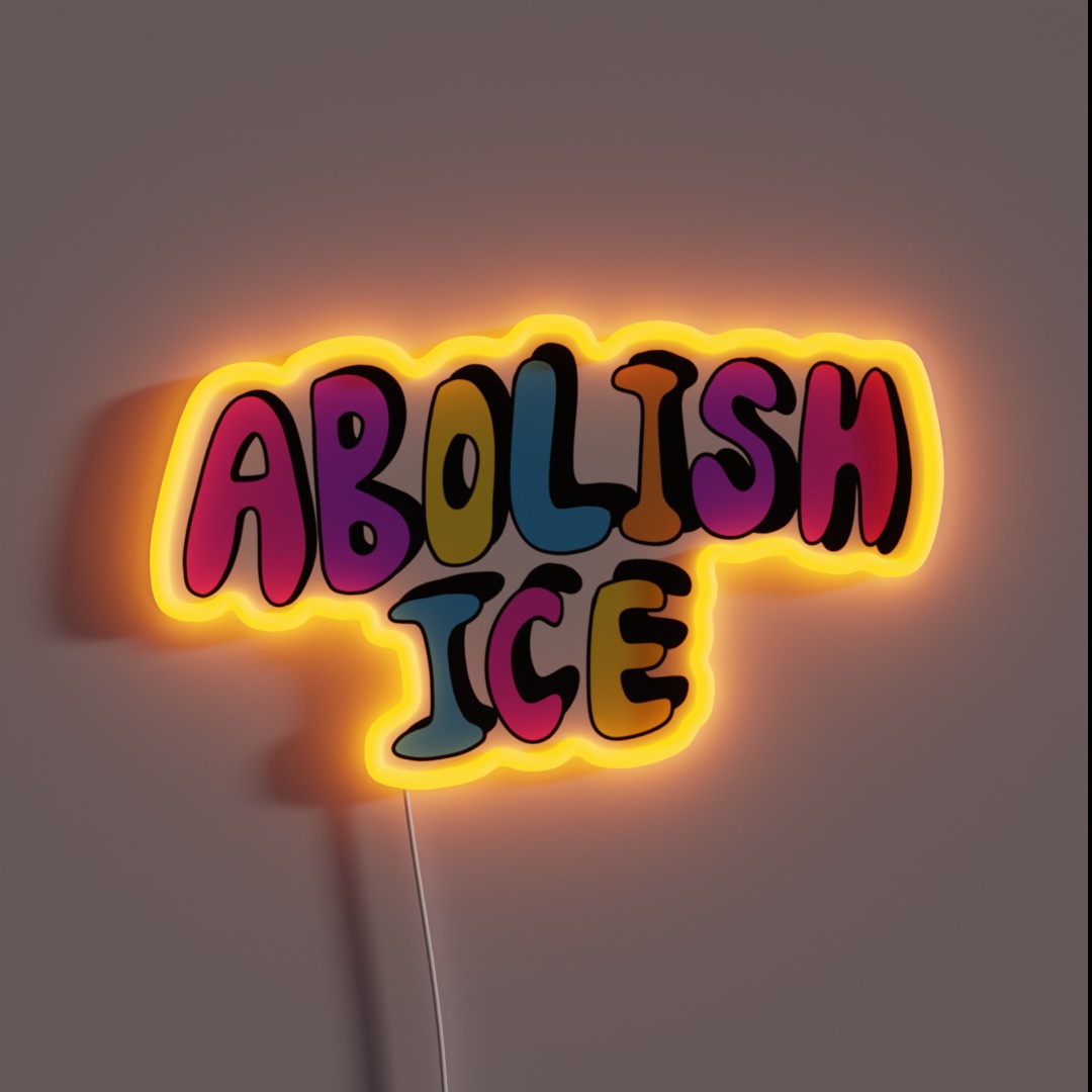 Make a statement with our ABOLISH ICE RGB neon sign, perfect for immigration rights activists and advocates, adding a bold touch to any room.