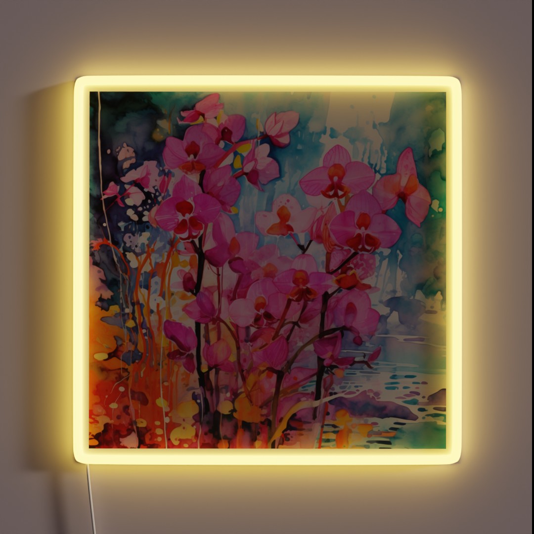 Elevate your space with vibrant beauty! This stunning abstract orchid watercolor art is recreated as an eye-catching RGB neon sign perfect for flower lovers and enthusiasts of unique home decor.