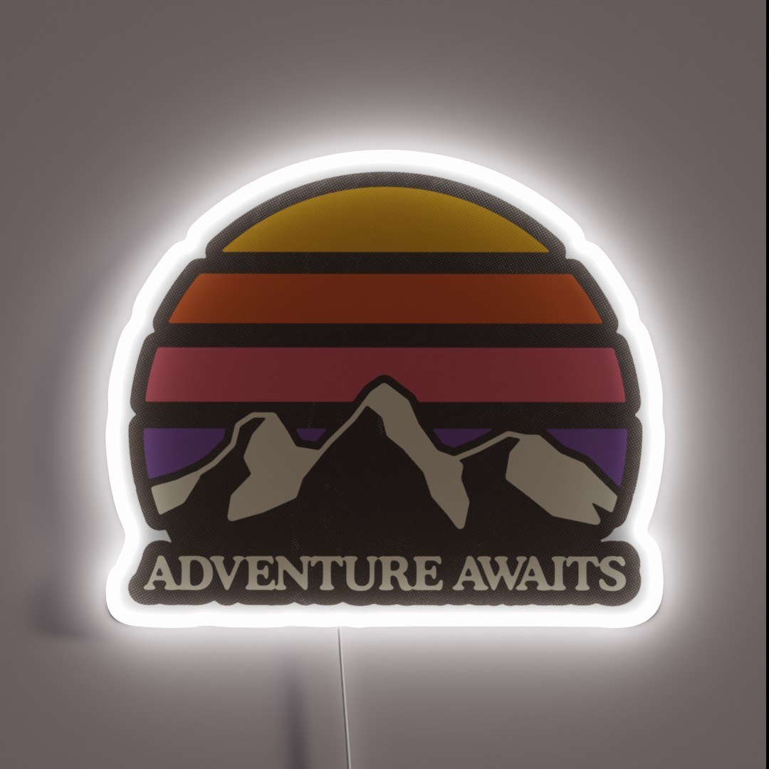 **Illuminate Your Journey with Adventure Awaits Mountain Sun RGB Neon Sign**