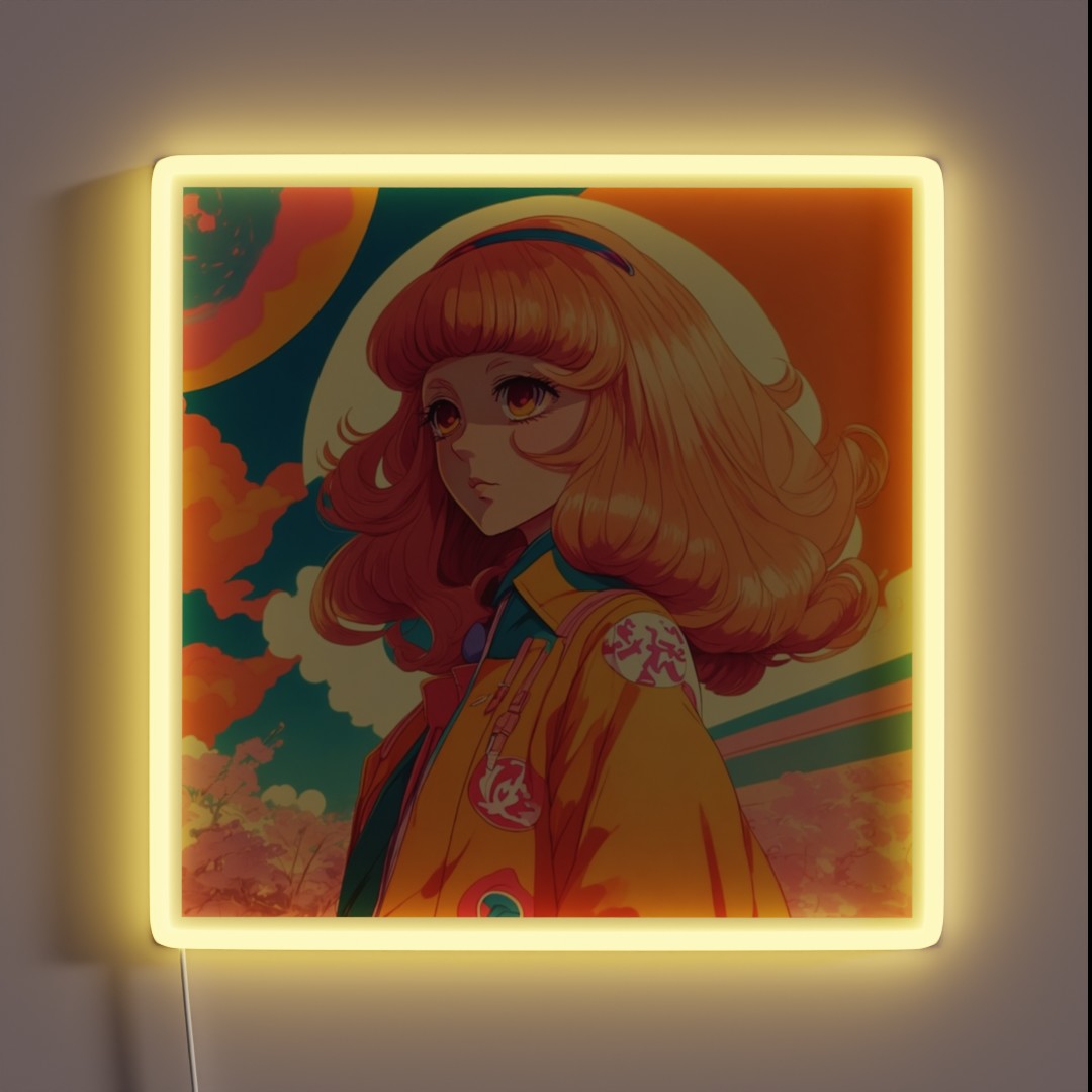 Aesthetic Retro 70s Anime Girl RGB Neon Sign