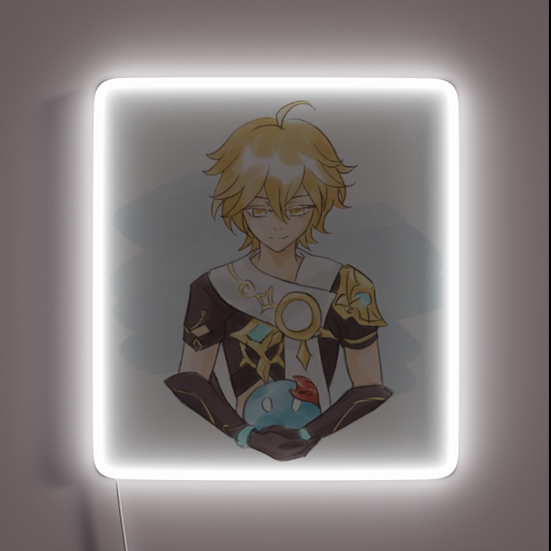 This eye-catching sign makes an excellent addition to any gaming setup or as a decorative piece in your room. Its unique design and colorful glow are sure to be a conversation starter among friends and family. So why settle for anything less when you can illuminate your space with the vibrant spirit of Aether from Genshin Impact? Get yours today and experience the magic of this beloved game like never before!
