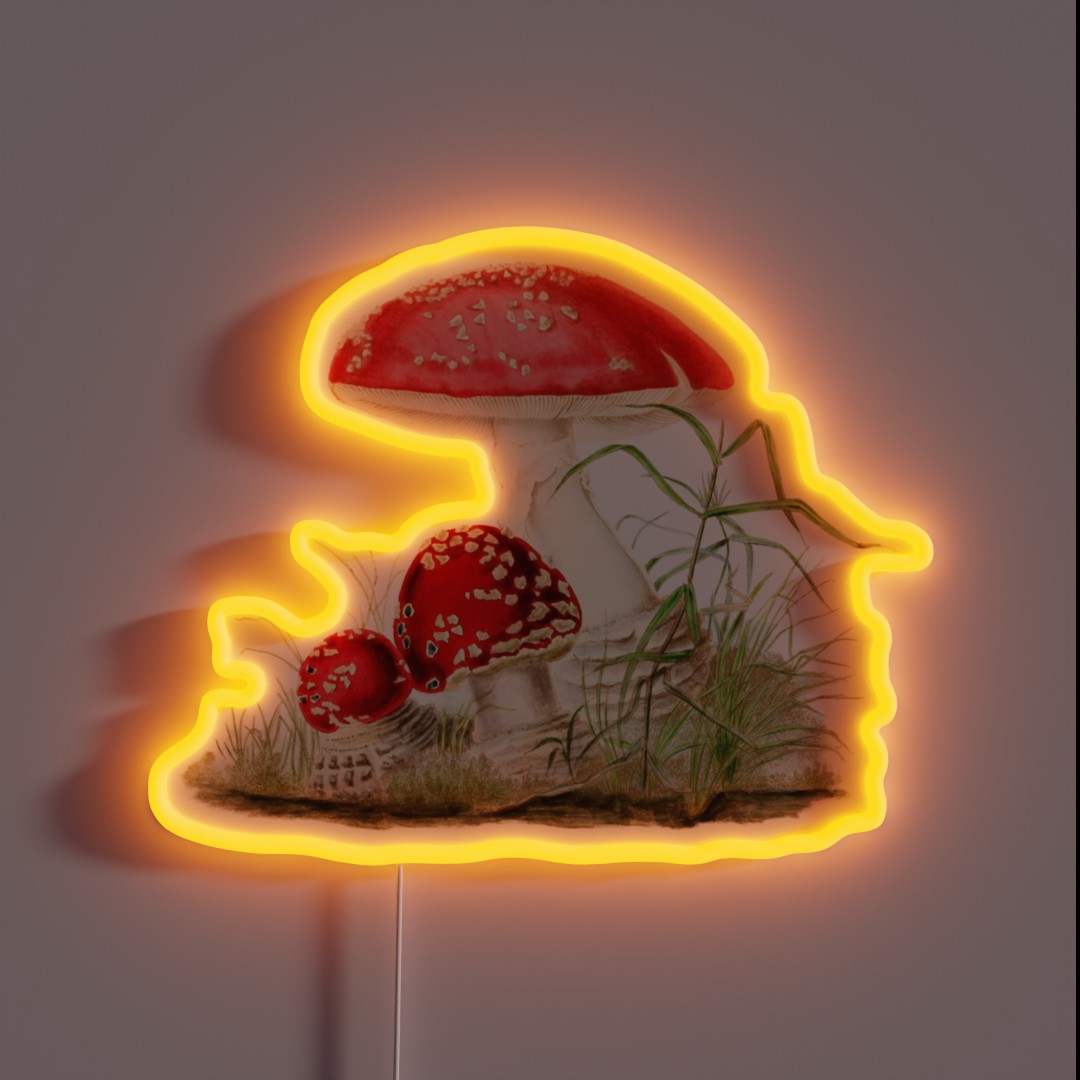 **Agaricus Muscarius Mushroom Vintage Illustration RGB Neon Sign**