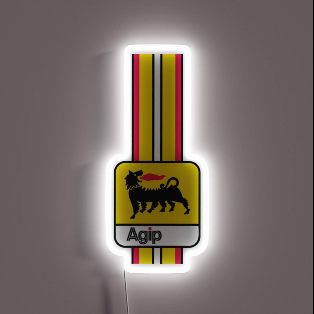Agip-branded RGB neon sign that captures the essence of Motorsport design with vibrant colors and sleek style.