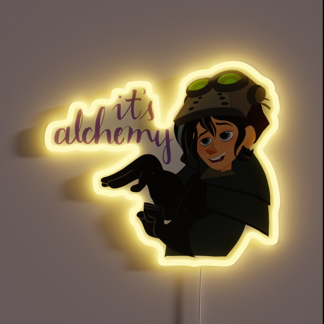Elevate your space with the aLcHeMy RGB neon sign, a mesmerizing blend of vintage style and modern technology that adds a pop of color to any room.