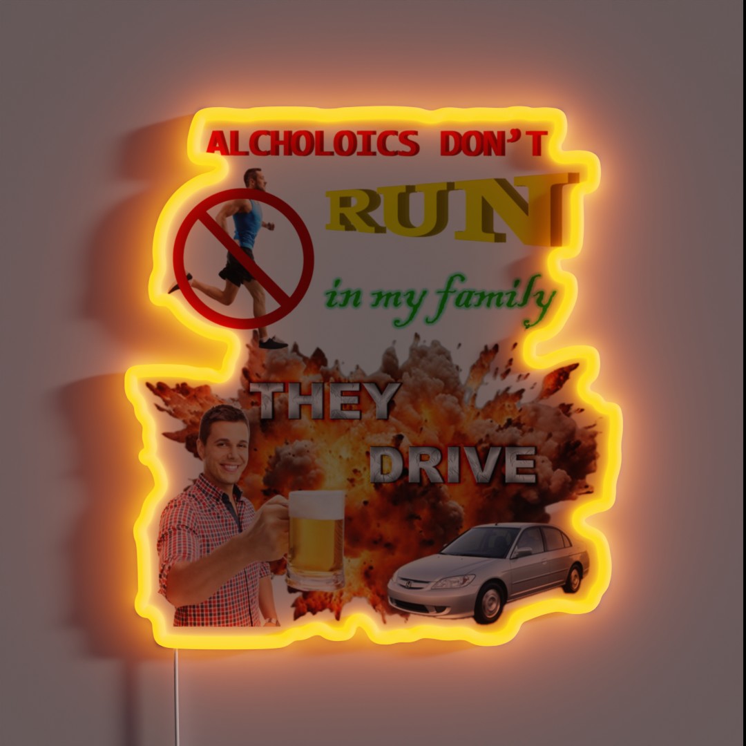 Alcoholics Don T Run In My Family They Drive RGB Neon Sign