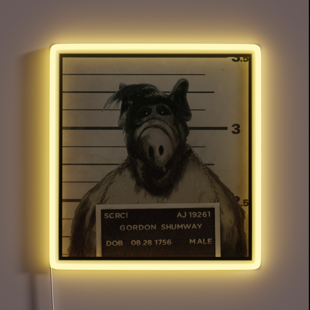 Bring home the nostalgia and charm of Nintendo’s iconic character with the Alf Mugshot RGB neon sign, perfect for retro gaming enthusiasts and fans of classic video games.
