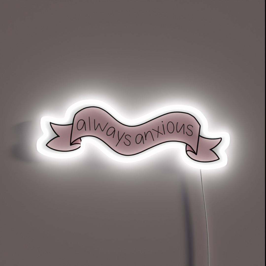 Relaxation in a glow: ‘Always Anxious’ RGB neon sign – a humorous, eye-catching lighting solution to acknowledge and poke fun at anxiety, perfect for bedrooms, offices, or therapy rooms.