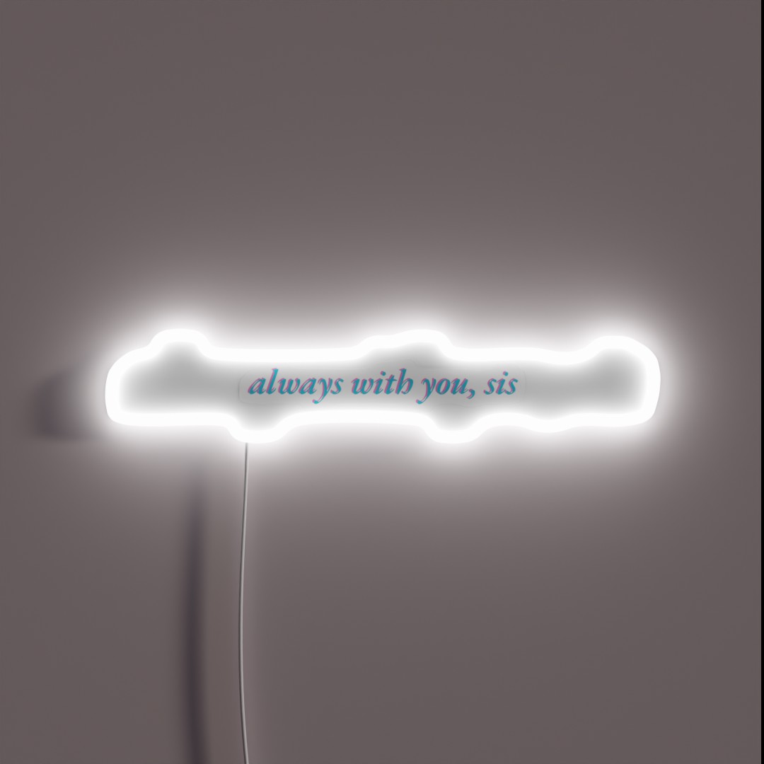 Brighten up your space with our Always With You Sis RGB neon sign, a heartfelt and customizable way to display love and sisterhood in vibrant colors.