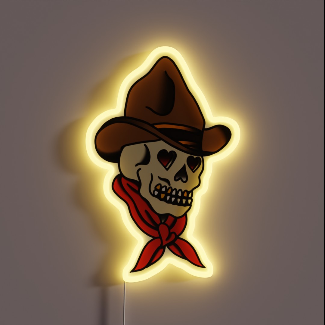 Add a touch of rugged elegance to your space with our American Traditional Cowboy Skull RGB neon sign, featuring a vibrant skull design that glows in stunning multicolor hues.