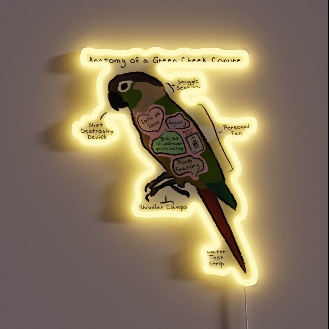 **Anatomy of a Green Cheek Conure Neon Sign**