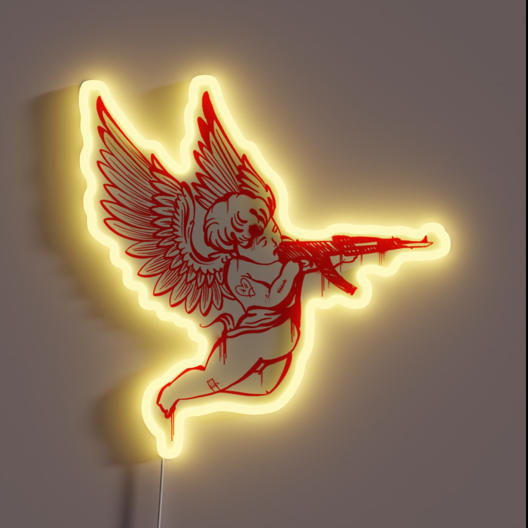 Add an edgy touch to your space with this unique ‘Angel with Machine Gun’ RGB neon sign, featuring a stunning fusion of spirituality and rebellion in vibrant colors.
