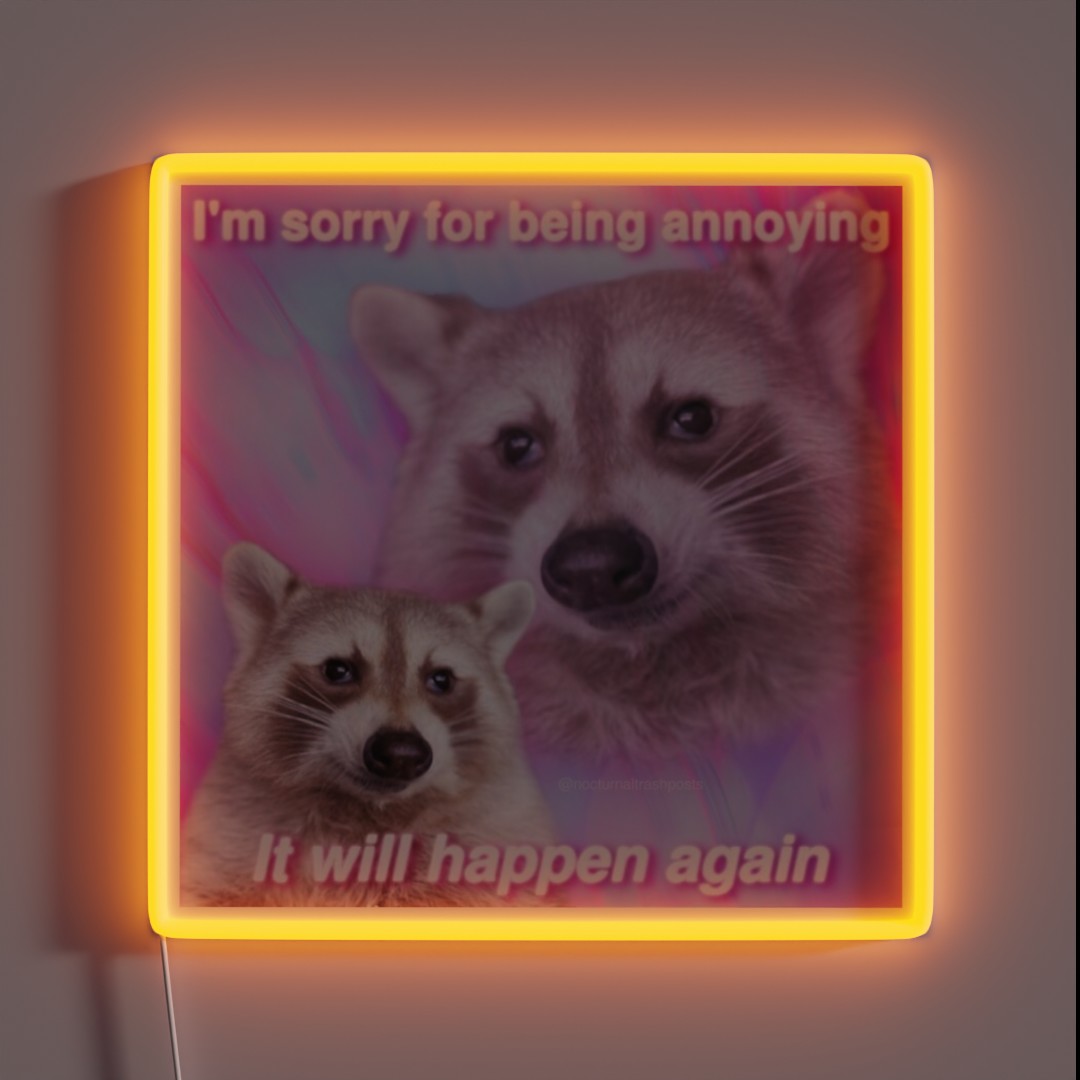 Add some cheeky charm to your home or office with our eye-catching Annoying Raccoon Meme RGB Neon Sign, perfect for fans of internet humor and nostalgia.