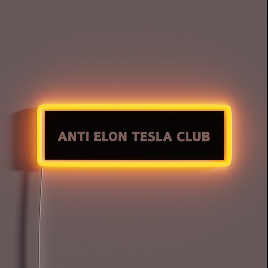 Show your unique personality with this eye-catching bumper sign that’s perfect for any Tesla enthusiast! This 12V RGB neon sign features a bold “Anti Elon Tesla Club” design, guaranteed to turn heads on the road.