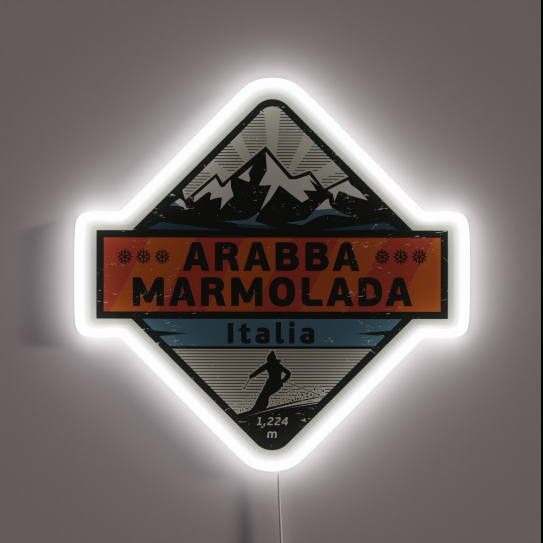 Add a touch of European flair to your space with this vibrant Arabba Marmolada Italy RGB neon sign, perfect for ski enthusiasts and travel lovers alike.