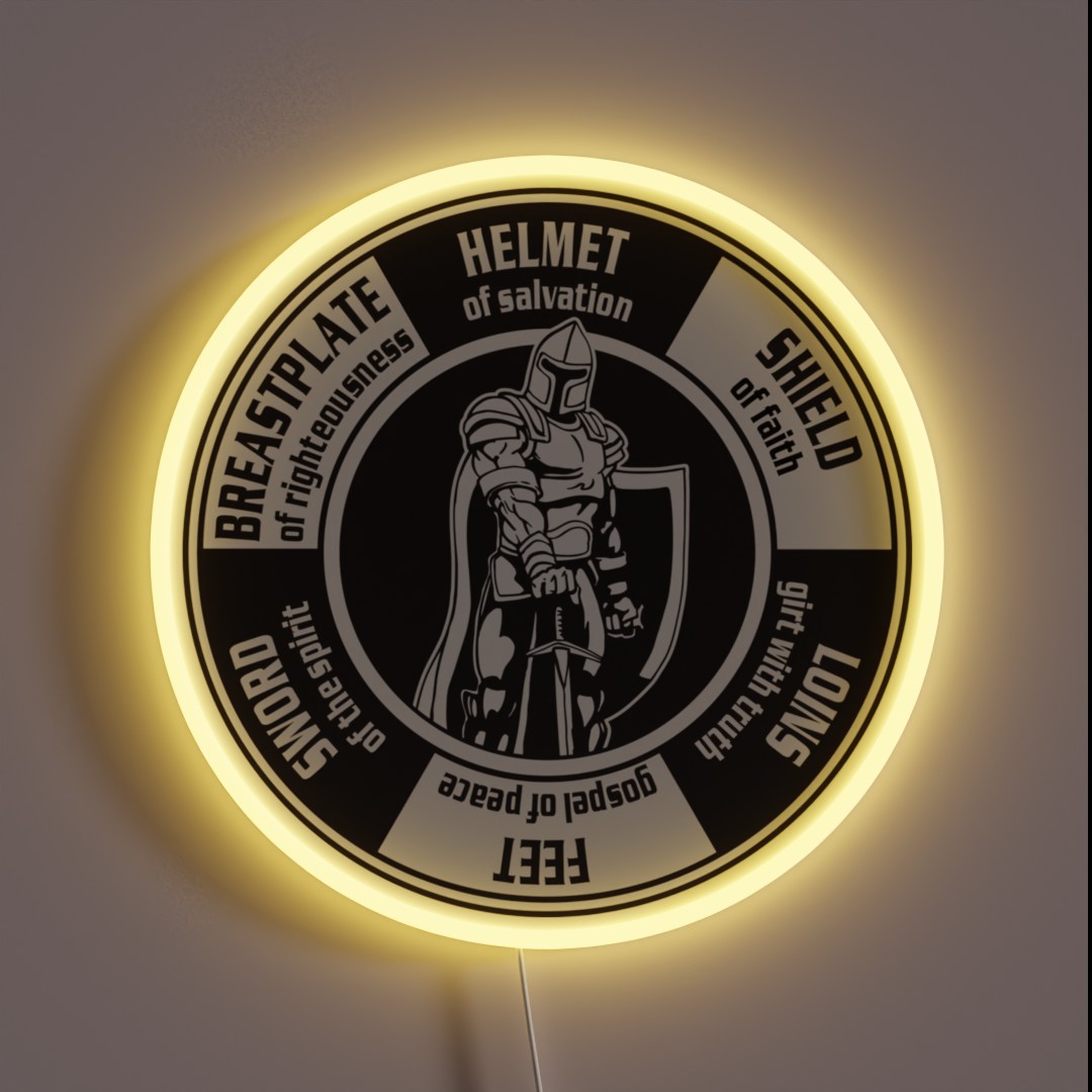 Illuminate your faith with this vibrant RGB neon sign featuring the Armor of God from Ephesians 6 in the New Testament, a powerful reminder of spiritual protection and strength for any Christian home or office.