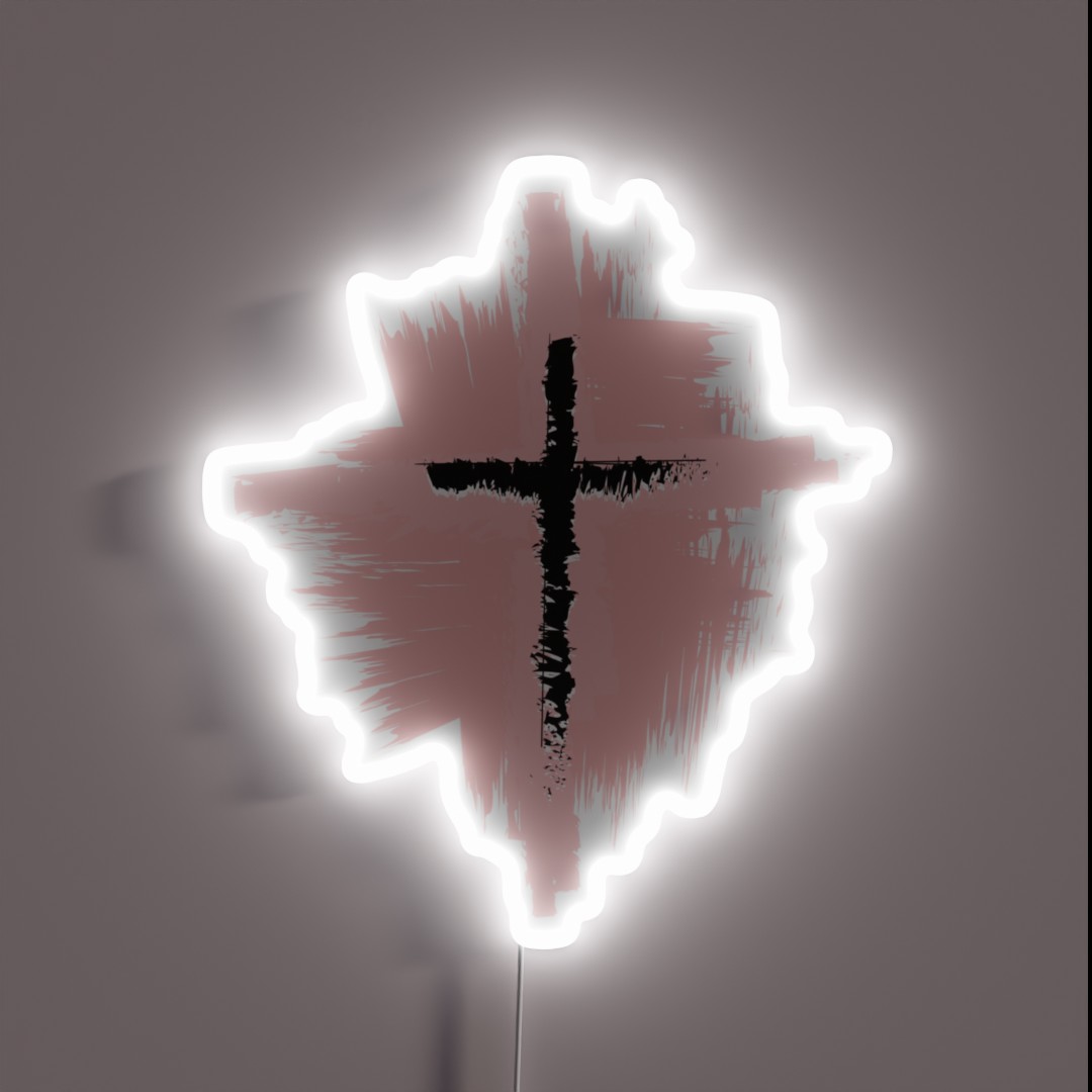 Introducing the Artistic Christian Cross Black And Pink Modern Minimalist Artistic Lines RGB Neon Sign, a stunning blend of faith, artistry, and cutting-edge technology.