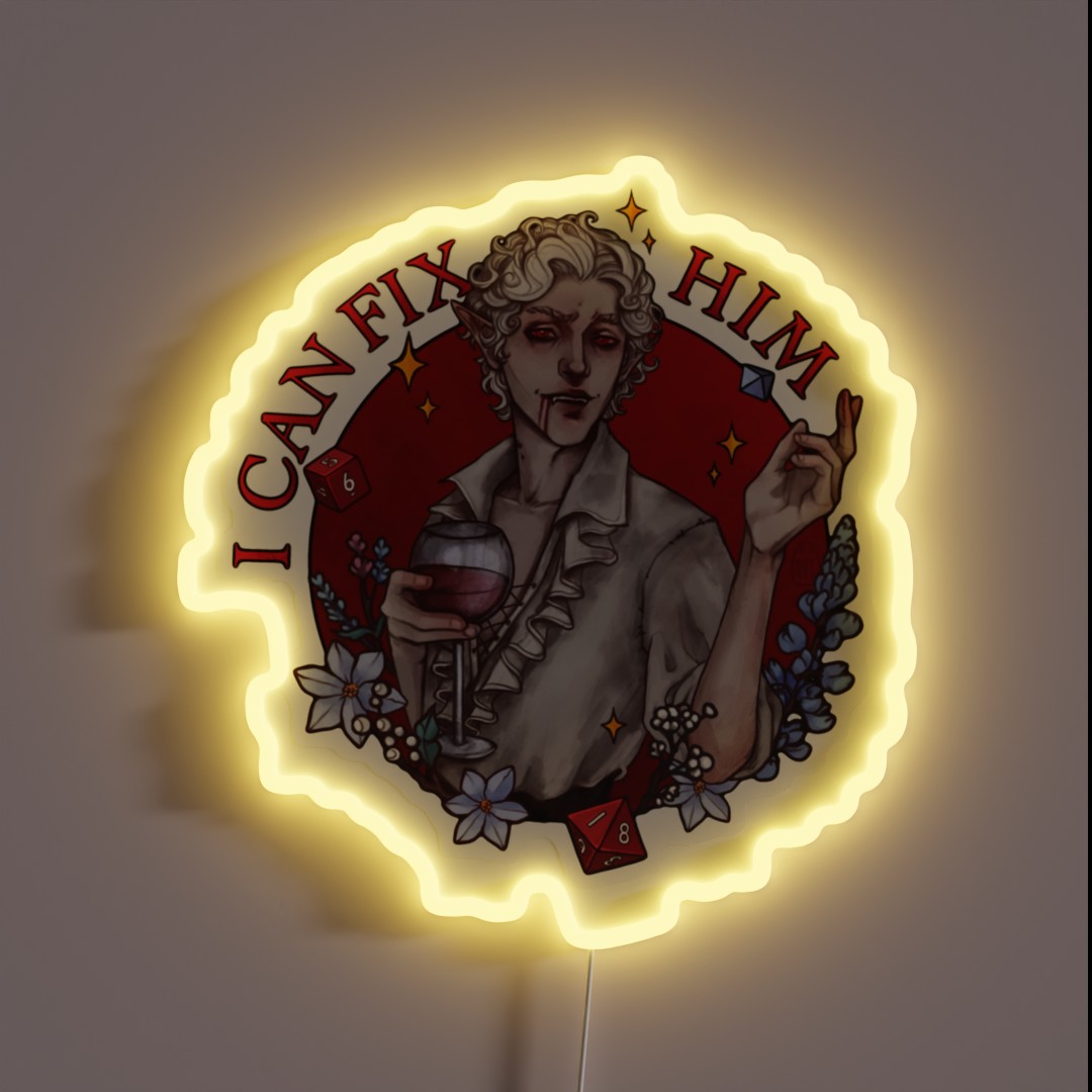 Astarion lover’s must-have! Fix your beloved character’s RGB glow with our custom Astarion I Can Fix Him Neon Sign, adding a vibrant touch to any gaming room or desk.