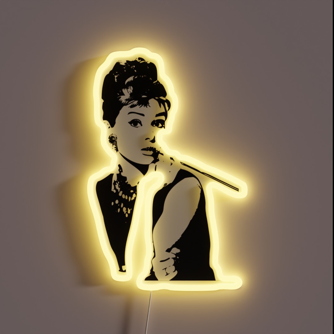 Add a touch of Old Hollywood glamour to your home or office with this Audrey Hepburn Icon RGB Neon Sign, a nostalgic tribute to the timeless style and sophistication of the beloved actress.