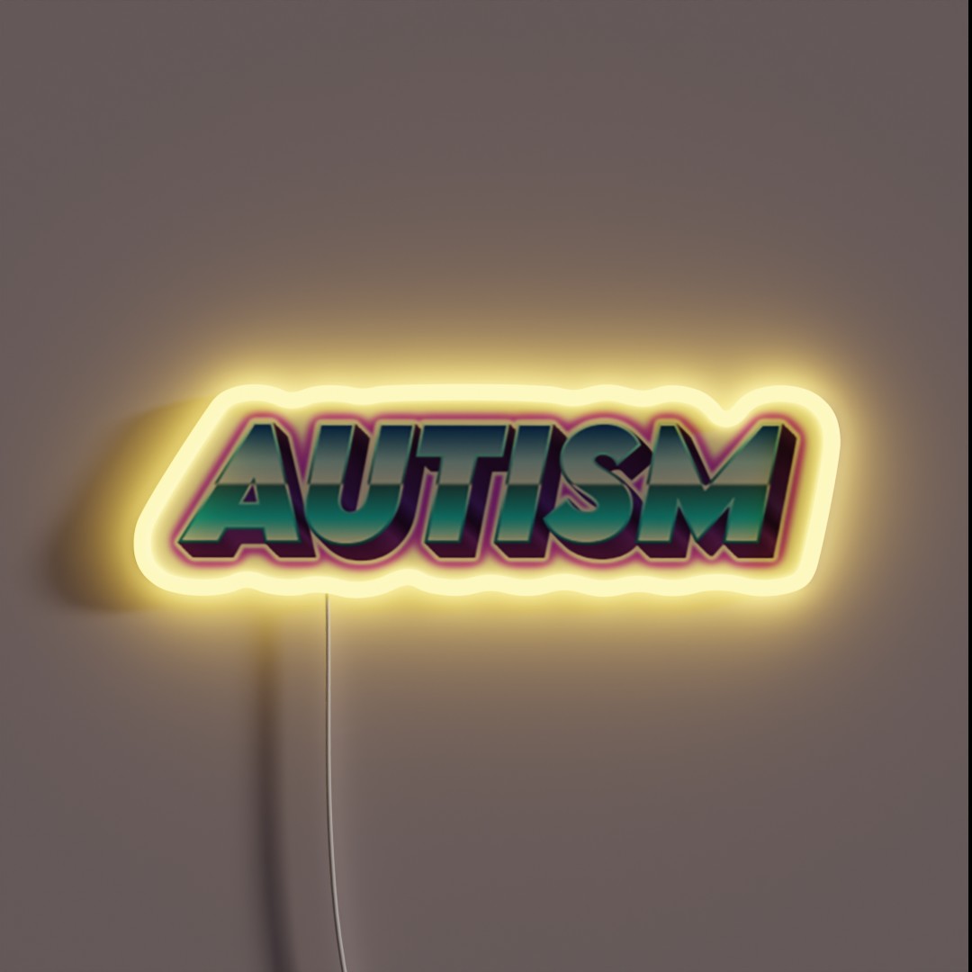 **Neon Sign: “Autism” in Bold, Eye-Catching Font** A vibrant, 3D-effect neon sign featuring the word “Autism” in a sleek, modern design. Perfect for autism awareness, education, and acceptance – add a pop of color to any room with this stylish and impactful decorative piece.