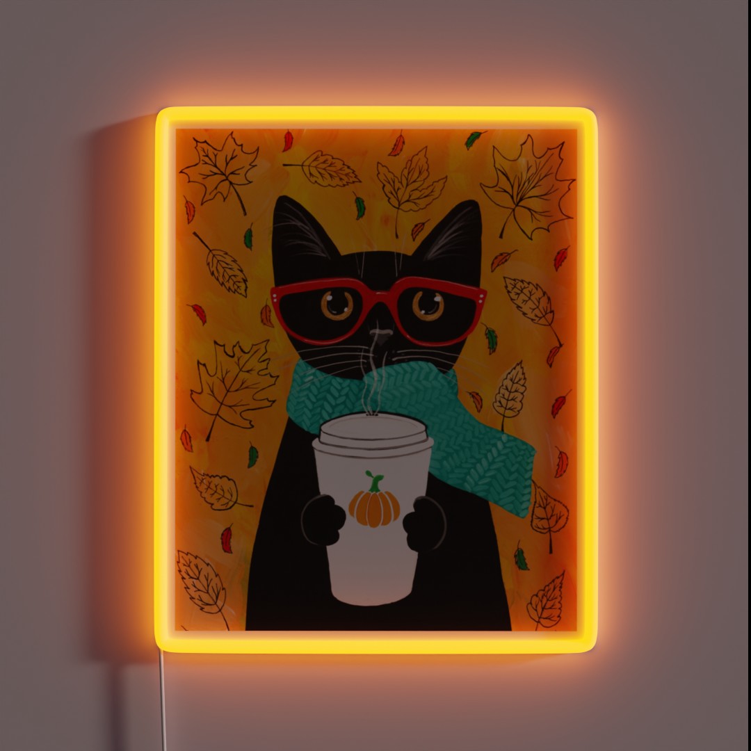**Autumn Pumpkin Coffee Cat RGB Neon Sign**