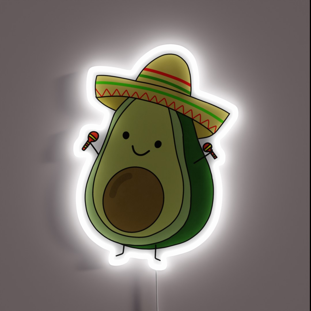 The sign features a vibrant green avocado shape that glows in radiant RGB colors, creating an eye-catching focal point. The low-voltage design ensures safe and easy use – simply plug it into the included 12V adapter and enjoy.