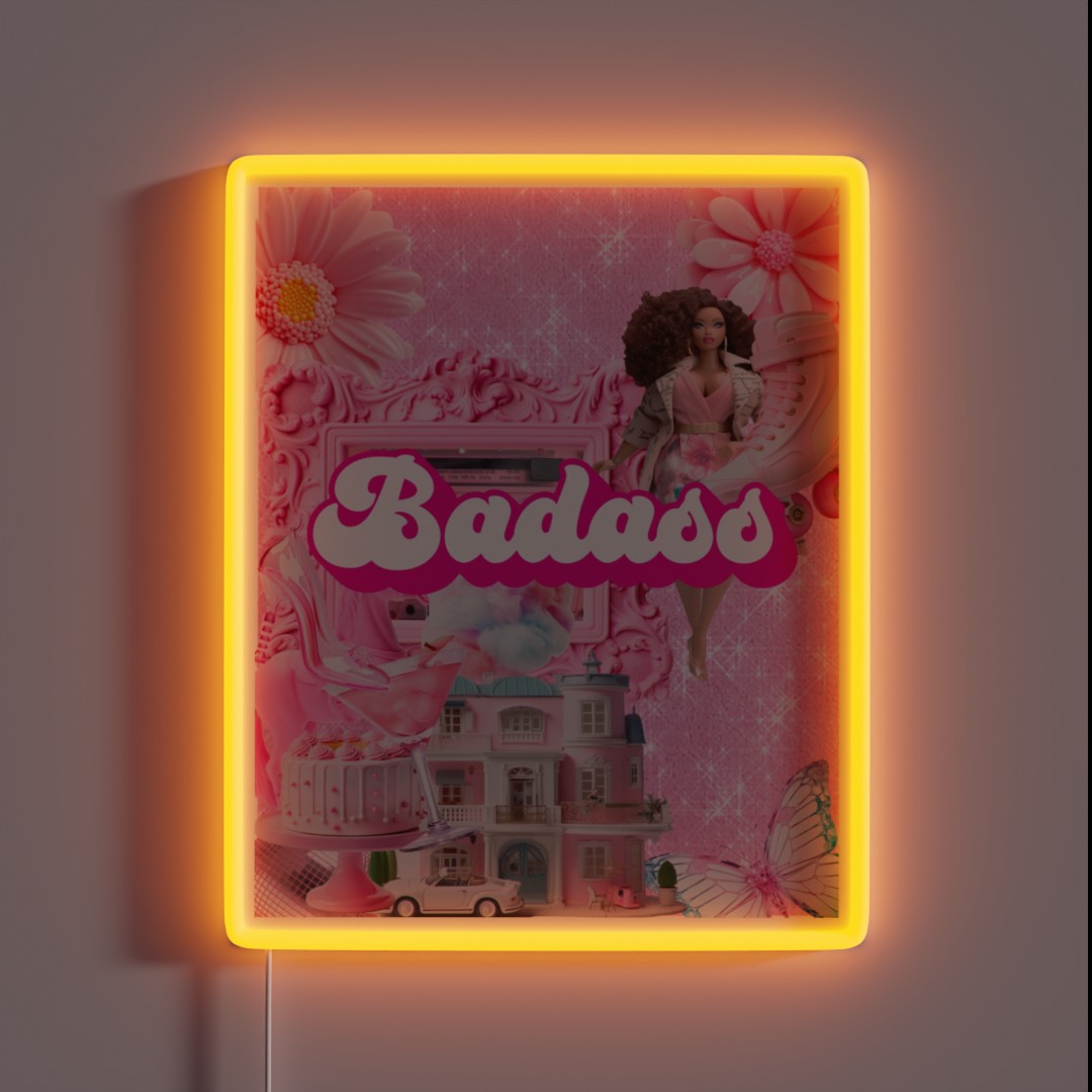 Make a statement with our bold Badass Barbiecore RGB neon sign, blending nostalgic charm with edgy sophistication in a vibrant display of personality and style.