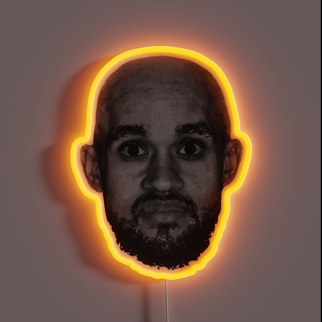 Get ready to bring a touch of humor and fun into your life with our “Bald Derrick White Funny Vintage Face” RGB neon sign. This unique piece of art is sure to spark conversations and add a pop of personality to any room.