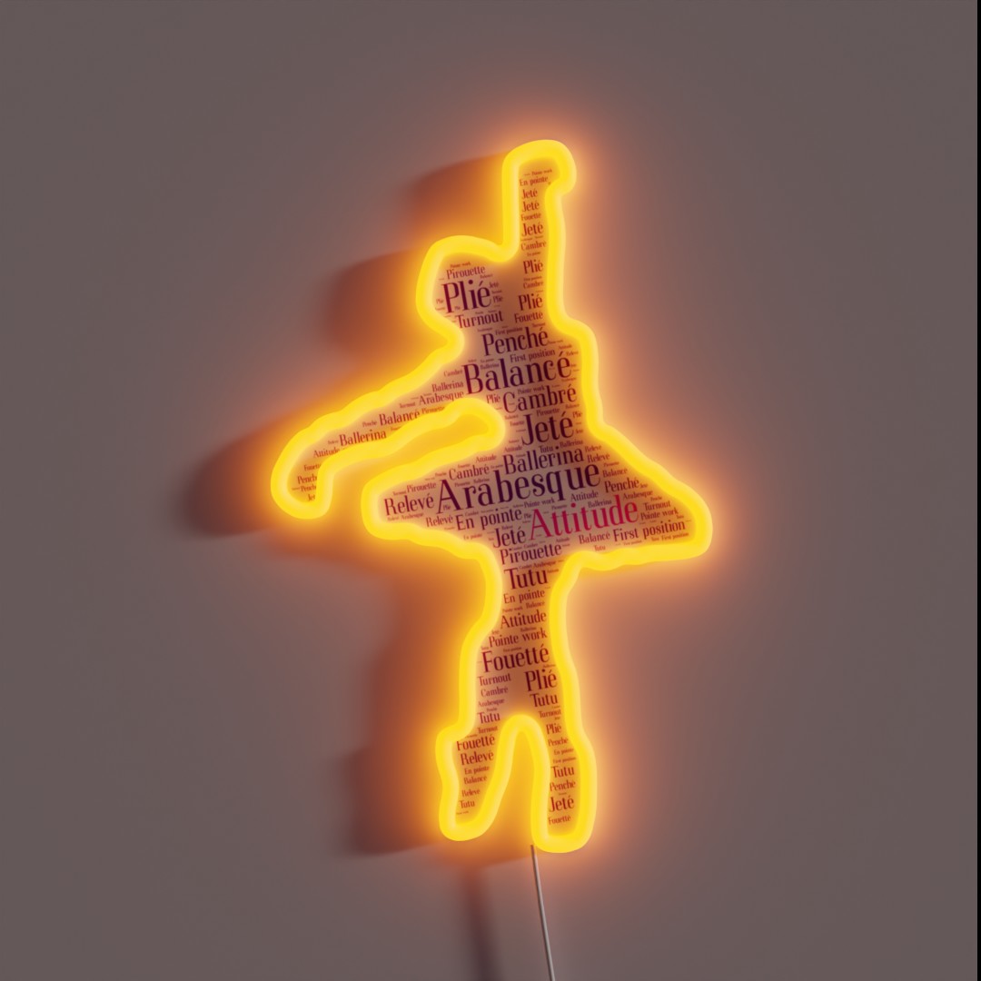 Brighten up your space with our vibrant Ballet Typography Purple Pink RGB neon sign, featuring elegant script letters that shine in mesmerizing purple and pink hues, perfect for dance studios, home decor, or unique gift ideas.