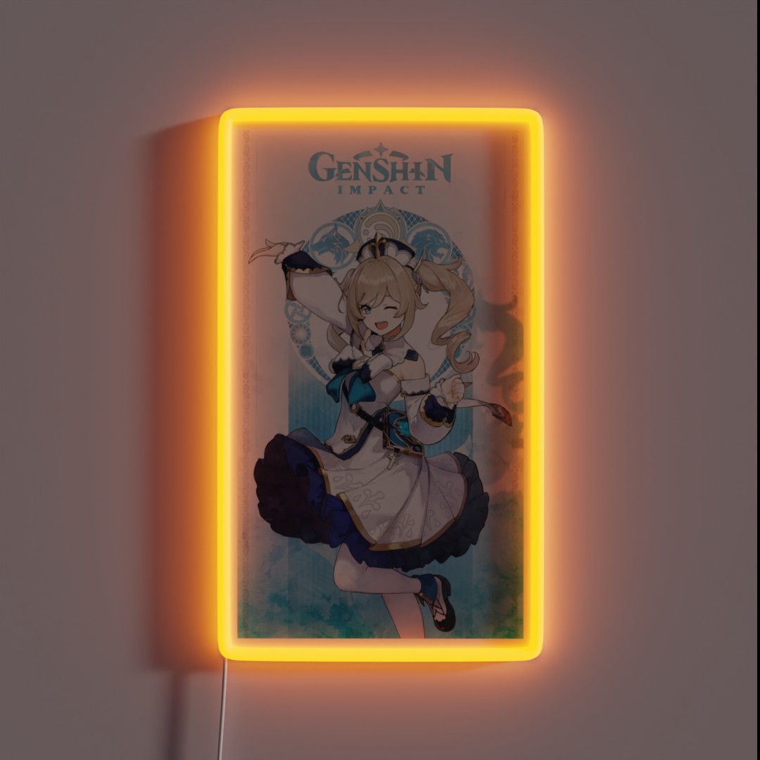 Add a touch of Teyvat flair to your gaming setup with this official Barbara Genshin Impact RGB neon sign, featuring vibrant colors and sleek design inspired by the beloved character.