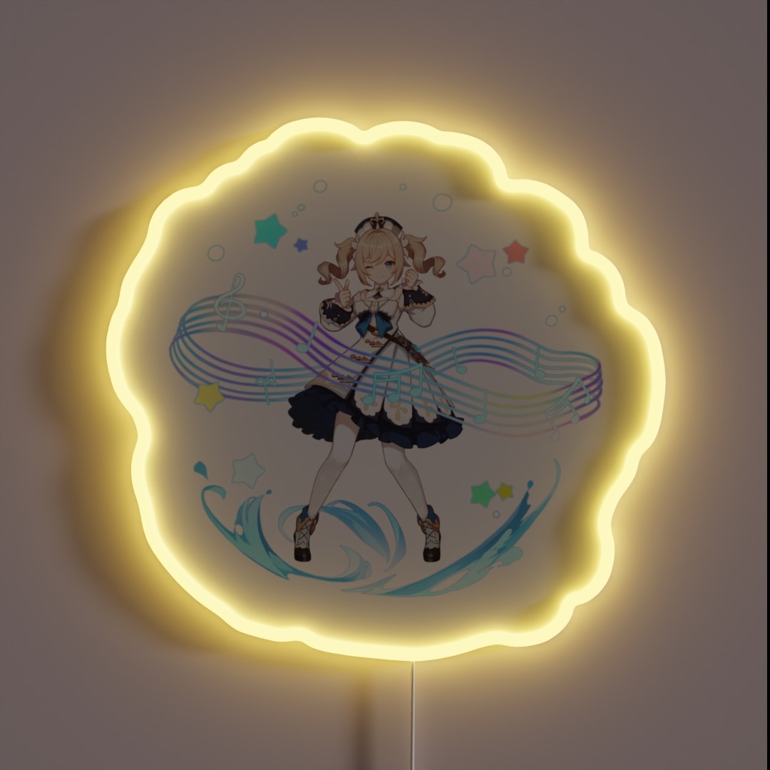 Barbara-inspired neon sign featuring vibrant RGB lighting, perfect for Genshin Impact fans to illuminate their gaming space with this customizable, plug-and-play decoration.