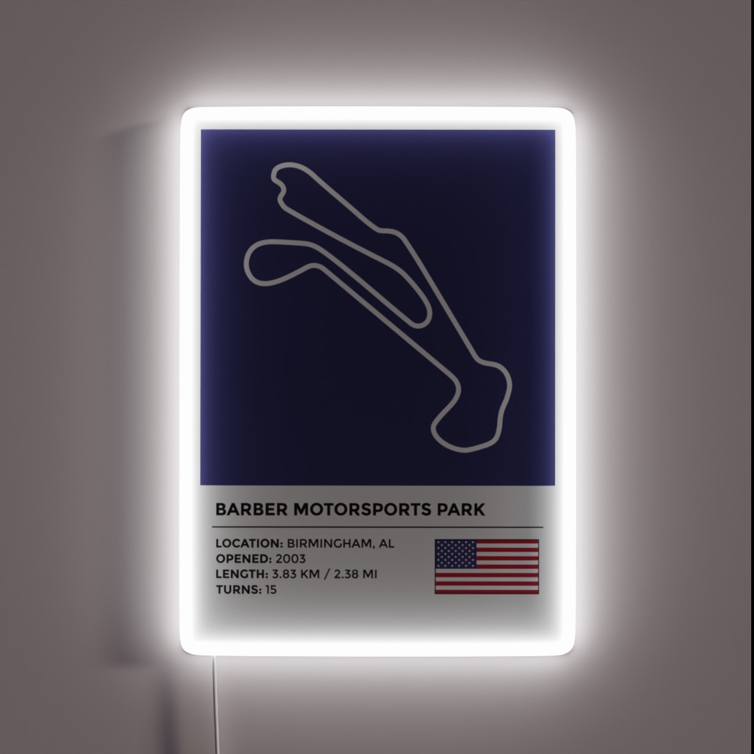 Don’t miss out on this unique opportunity to illuminate your passion! Get your touchable and safe Barber Motorsports Park RGB neon sign today and experience the thrill of the track like never before.