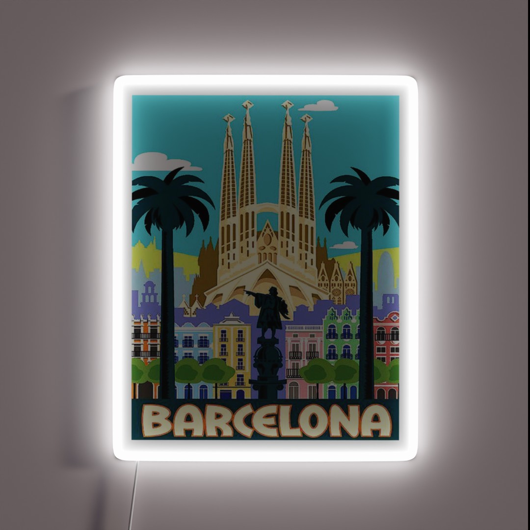 Bring the vibrant spirit of Barcelona into your home or office with this stunning vintage travel and tourism advertising print RGB neon sign. This unique piece is a perfect blend of nostalgic charm and modern design.