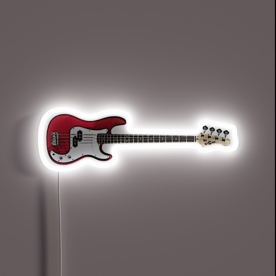 **Neon Sign: Red Bass Guitar**