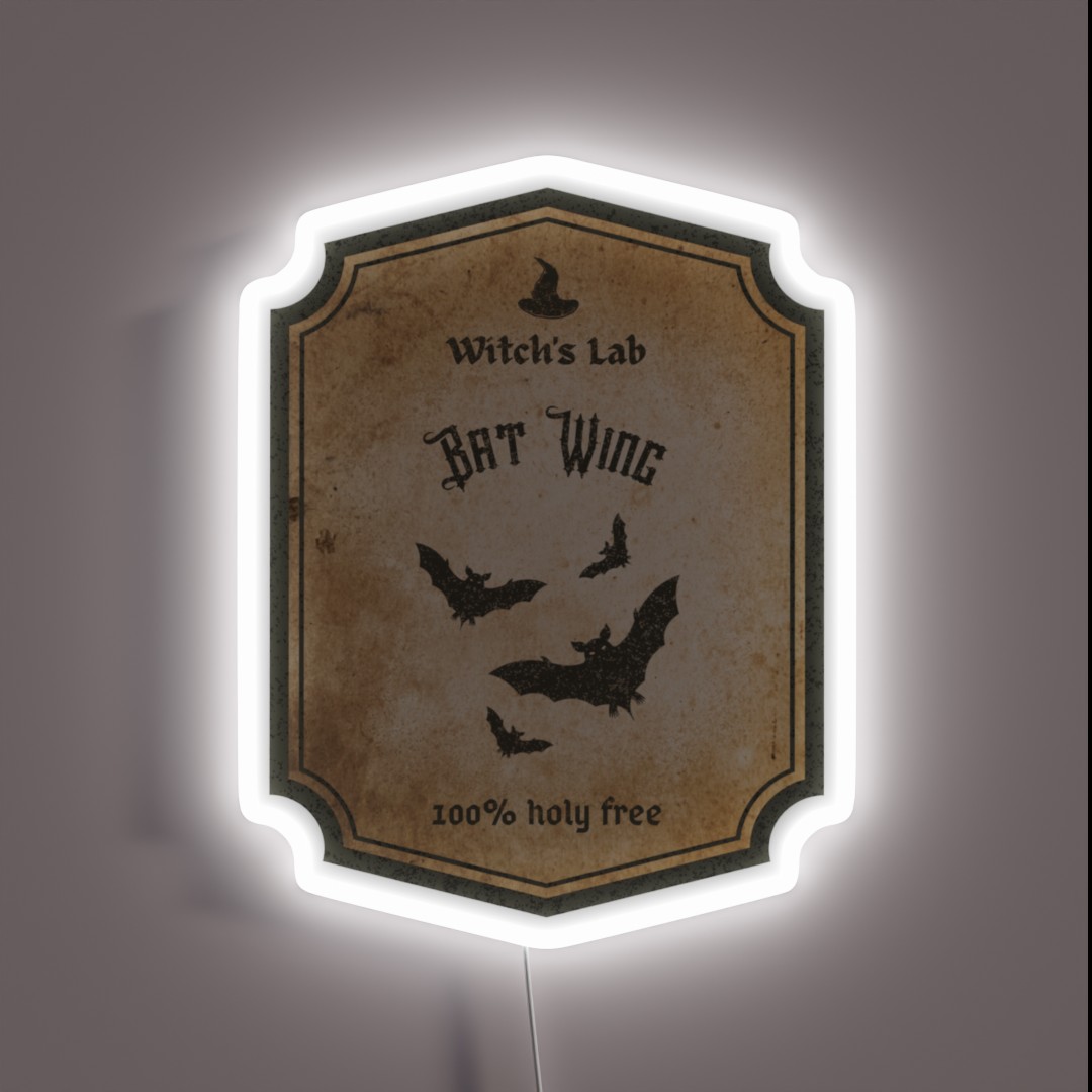 Bring the spooky spirit to life this Halloween season with our Bat Wing Halloween Label Dark Vertical RGB neon sign. Order now and get ready to illuminate your home in a whole new way!