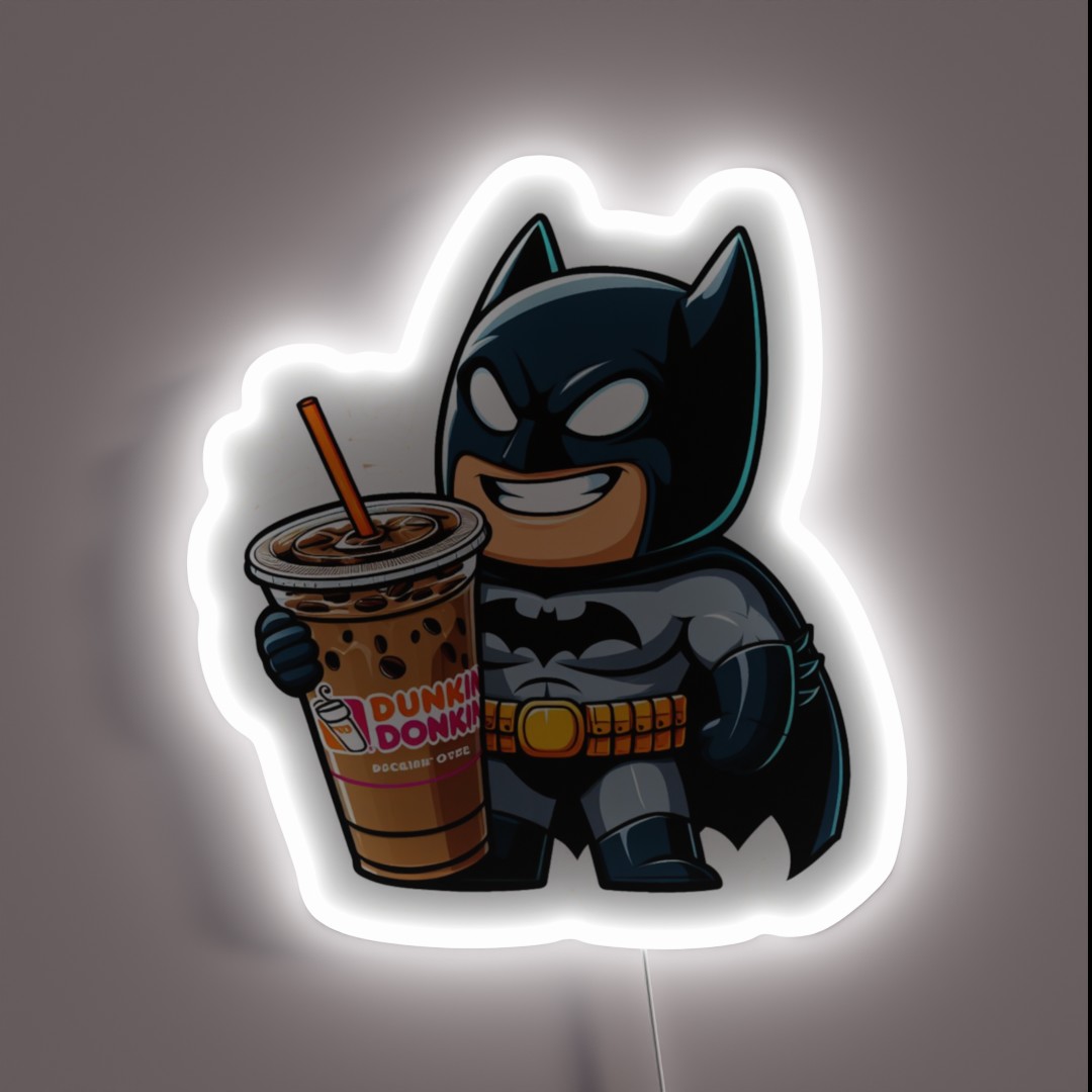 Add a touch of Dark Knight charm to your space with this eye-catching ‘Batman Runs On Dunkin’ RGB neon sign, perfect for comic book fans and coffee lovers alike.