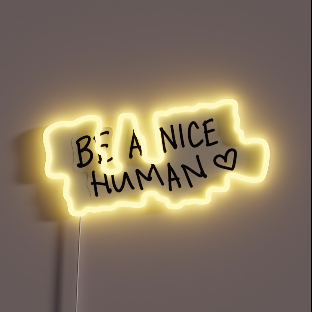 Spread kindness and positivity with our ‘Be a Nice Human’ RGB neon sign, a vibrant and uplifting reminder to treat others with love and respect.