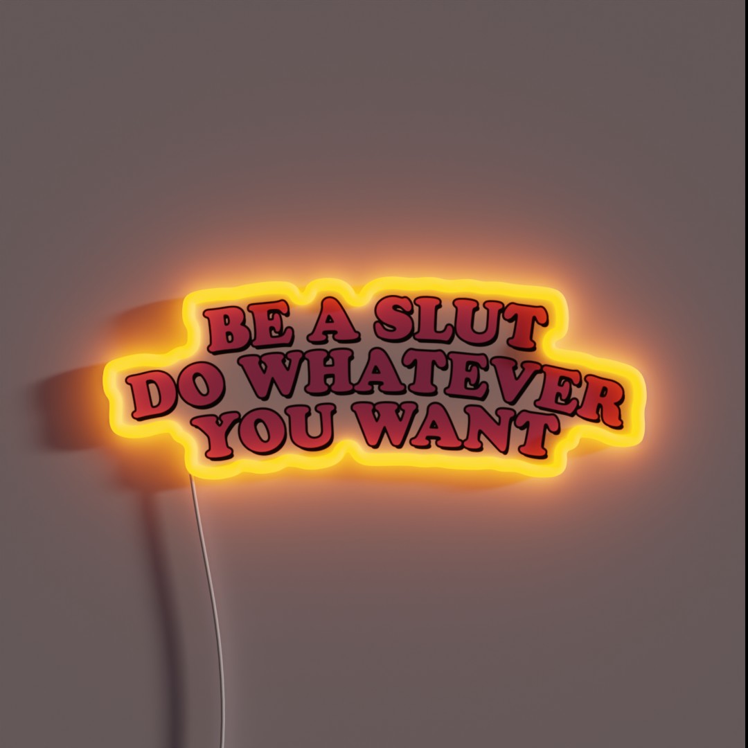 Embracing individuality and self-expression with unique, handcrafted signs featuring the phrase “BE A SLUT DO WHATEVER YOU WANT” in bold, customizable RGB neon lights, perfect for personal spaces and conversation starters.