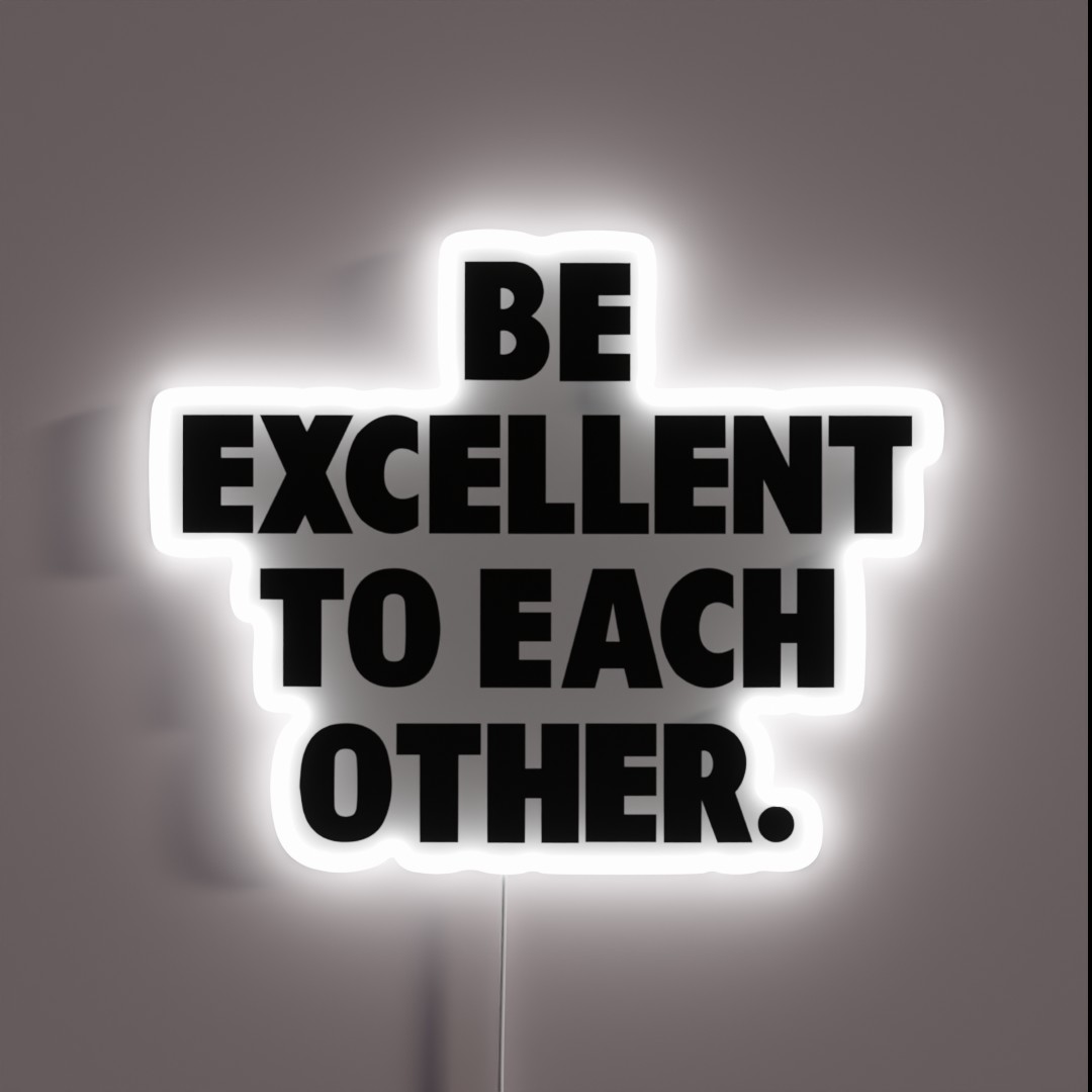 Add a touch of 80s nostalgia and modern flair with our ‘Be Excellent to Each Other’ RGB neon sign, perfect for home decor or office spaces.