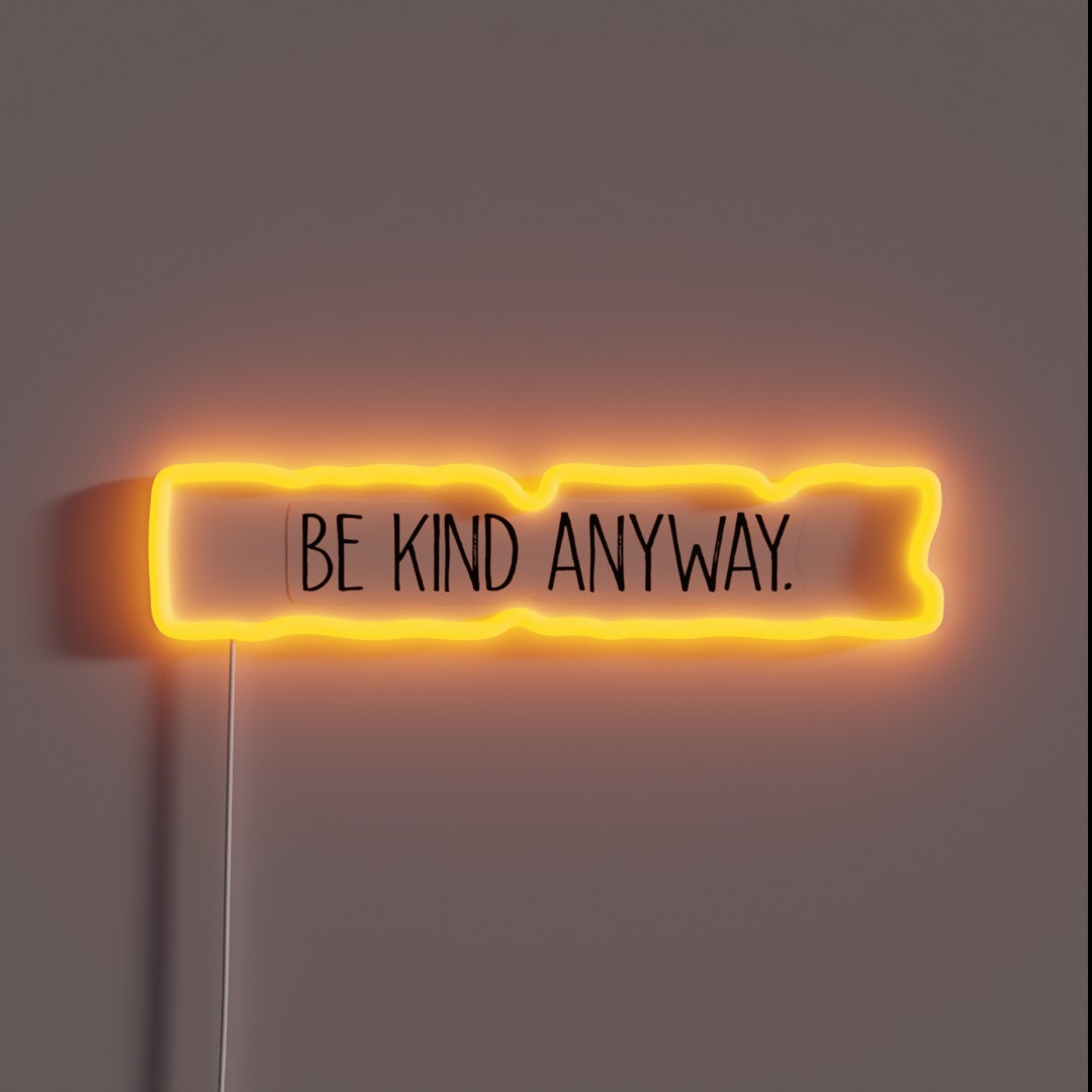 Spread positivity and kindness with our vibrant Be Kind Anyway RGB neon sign, a motivational reminder to cultivate compassion and empathy in your home or workspace.